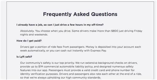 FAQ同样是一个很好的吸引用户的内容,因为所提出的问题是用户在注册之前可能需要澄清的问题。